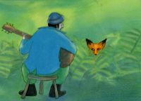 Rousse, la renarde, sort du bois, attirée par une bonne odeur, une odeur de poulailler. Dans sa maison, Octobre, le fermier, ne se doute de rien. Rousse s'approche encore et regarde Octobre, qui, bien tranquille dans sa maison, joue de la guitare assis sur un tabouret. «Quel drôle d'animal!» se dit Rousse, ni chouette, ni grillon, peut-être un sanglier. Mais les poules sentent le danger et se mettent à caqueter. Alerté, Octobre cesse de chanter et aperçoit par la fenêtre une flamme rousse près du poulailler. Jamais il n'a vu une bête aussi belle. Il voudrait la caresser mais, pour protéger ses poules, il se met à crier. La renarde, effrayée, s'enfuit dans la forêt. Chacun, la nuit venue, regrette. Rousse pense au drôle de sanglier et Octobre songe à la belle crinière enflammée. Certaines histoires d'amour empruntent de mystérieux sentiers. Magie et mystère se mêlent aux parfums d'automne, dans cet album qui bruisse aussi doucement qu'une promenade en forêt.